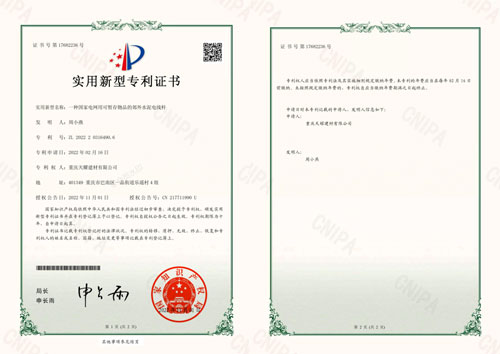 重慶天耀建材有限公司榮獲多項(xiàng)專利證明